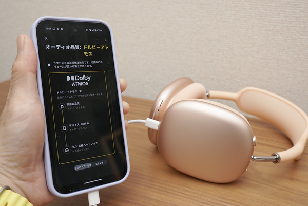 Amazon Musicは、ドルビーアトモスの3D Musicコンテンツとして配信されている音源もUSBオーディオだけで聴けました。Androidは組み合わせるデバイスによってAirPods MaxのUSBオーディオの振る舞いが少しずつ変わりそうです。