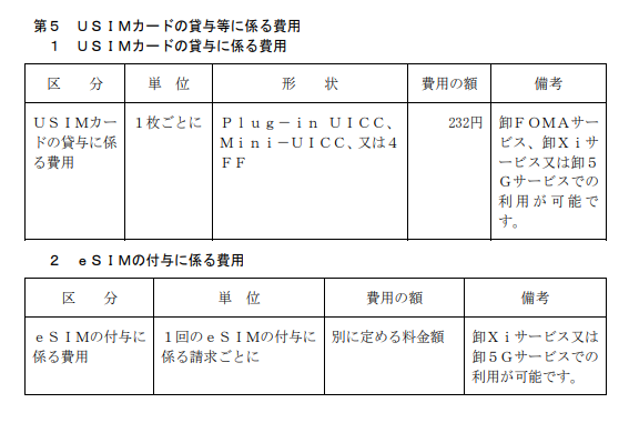 | ドコモ(データeSIM) | 220円 | |