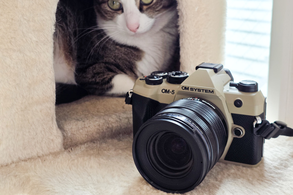 撮ったカメラは2025年夏の新製品、OM SYSTEMの「OM-5 Mark II」である。片手で持ってさくっと被写体を追える機動力が魅力だ。猫検出AFとは未搭載だけど、被写体検出AFなんて存在しない時代からカメラを使ってる人には大きな問題ではない気はする。