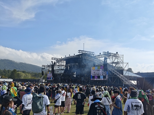 以前もサマーソニックでのauブースを取材しましたが(通信のチカラでもっと楽しく! フジロックやサマソニにauがブース出展し続ける理由)、今回は山中湖湖畔で開催されている邦楽メインのフェス「Sweet Love Shower 2025」におけるauの取り組みをレポートします。ちなみに、この日のヘッドライナーは今一番勢いのあるバンド「Mrs. GREEN APPLE」でした。