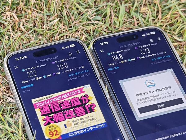 まずは今回の主目的とも言える、auが最近始めたサービス「au 5G Fast Lane」の速度チェックから。au 5G Fast Laneとは対応の料金プラン(au バリューリンクプランや使い放題MAX+ 5Gなど )に加え、5G SAを契約している人に専用の帯域が割り当てられるサービスで、通常のモバイル回線よりも通信速度が速いとされています。どれくらい速いのか気になるところですが……。
