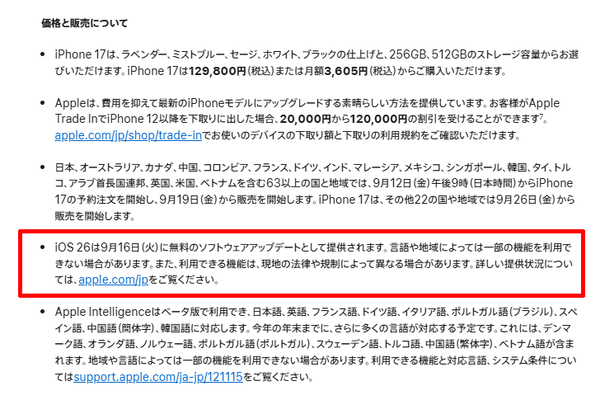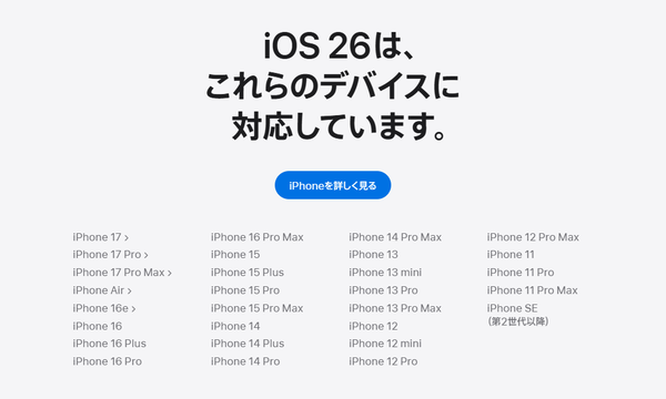 アップルは、iOSの最新バージョン「iOS 26」の配信を9月16日(火)に開始することを、iPhone 17のニュースリリース内で公表している。