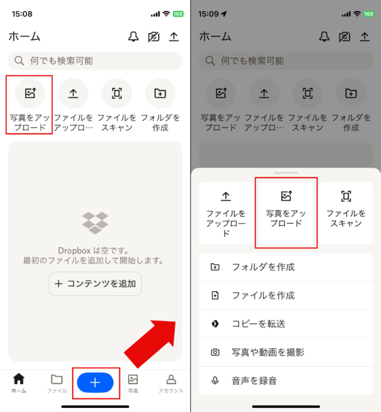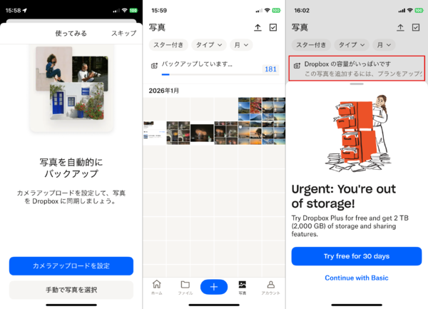 (1)写真/ビデオをスマホからDropboxにアップロード(コピー)